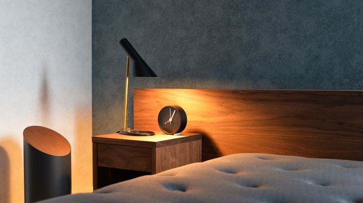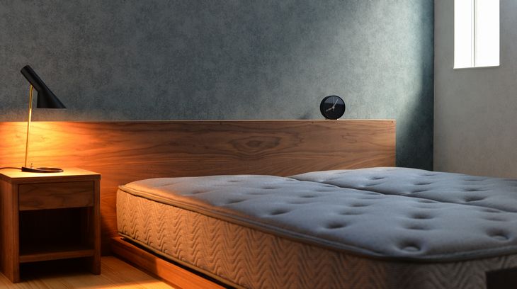 ヘッドボードの上には携帯電話や眼鏡、時計など