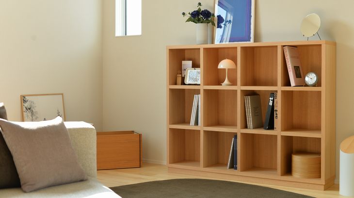 なるよう、お気に入りの品や本が飾れるシェルフ