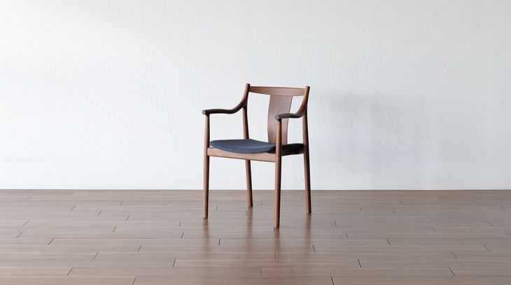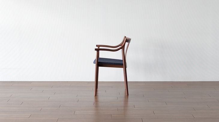 CHORUS Arm Chair ❘ WN 展示商品仕様 サイズ W54×D52.5×H79×SH44.5×AH65.5 素材 ウォールナット 仕上 ウレタン塗装 張地 F:エリソス 374NV 生産地 日本 納期 7 weeks 備考 その他、バリエーションあり CHORUS Arm Chair ❘ OAK ❘ 板座 ❘ SOAP CHORUS Arm Chair ❘ WN
