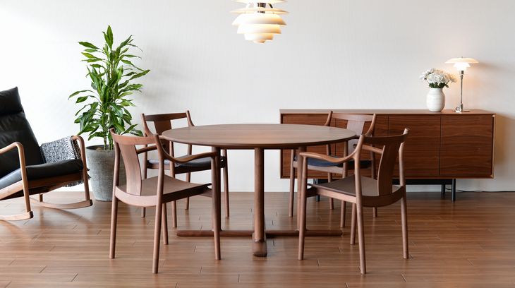 CHORUS Round Table 展示商品仕様 サイズ Φ130×H71 素材 ウォールナット 仕上 オイル仕上 生産地 日本 納期 7 weeks 備考 その他、バリエーションあり AWAZA LDR Chair STICK Desk