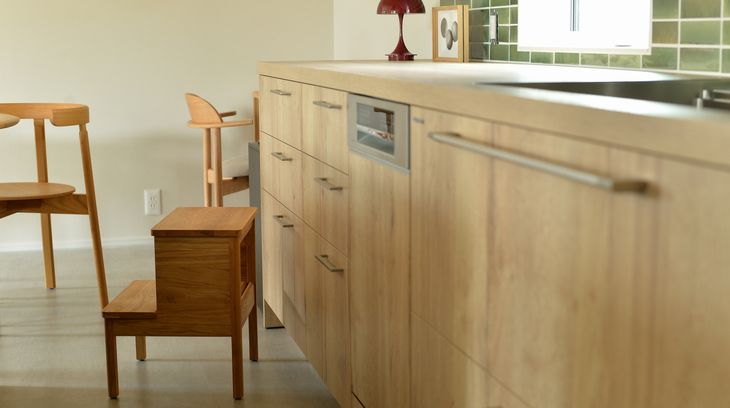 A LINE Step Stool 展示商品仕様 サイズ W38.5×D38×H45.5 素材 オーク 仕上 オイル仕上 コーディネート事例 (モリスデザイン 様) ANGLE STANDARD Stool A LINE Storage Bench