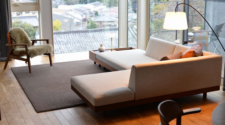 LAZY DANISH Sofa 展示商品仕様 サイズ W222.5×D180×H59×SH30 素材 ウォールナット 仕上 オイル仕上 張地 RANK3:SUBLIM 50 生産地 日本 納期 5 weeks 備考 その他、バリエーションあり コーディネート事例 (撮影協力:モリスデザイン 様) BLOG CHILL 925 Sofa VL 45 RADIO HOUSE Pendant Lamp