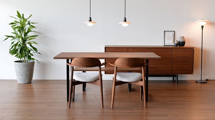 LEPO Dining Table 展示商品仕様 サイズ W160×D85×H71.4 素材 ウォールナット 仕上 オイル仕上 生産地 日本 納期 5 weeks 備考 その他、バリエーションあり YU UT2 Dining Table ❘ WN FORMS Chair ❘ 板座