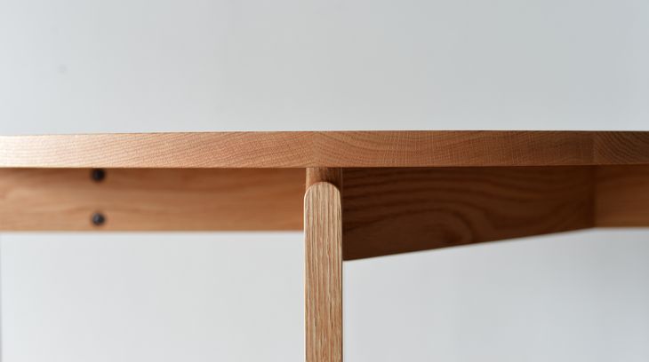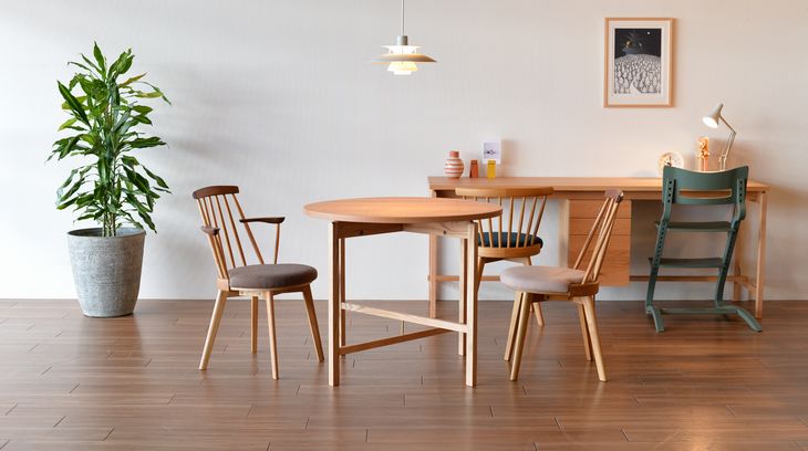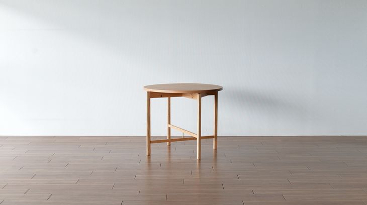 NOON Round Table 展示商品仕様 サイズ Φ85×H71 素材 レッドオーク 仕上 オイル仕上 生産地 日本 納期 6weeks 天板が浮いて見える軽快なデザイン 経年変化が楽しめる天然木と真鍮を使用 COMTE Kitchen Board HIMAWARI Living Board
